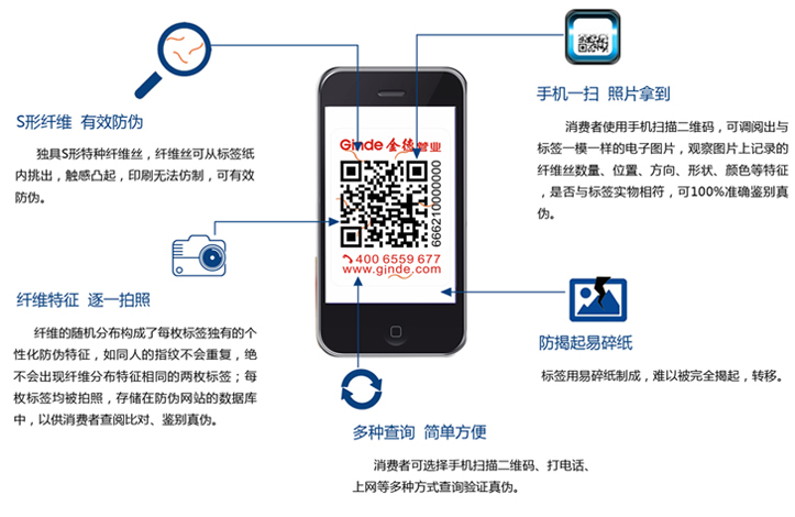 1、對比實物標簽上的3-5條S形金色纖維絲,觀察其形狀、位置、方向是否與查詢到的標簽上的纖維絲相符,如果相符并能挑出,則是真品,否則謹防假冒;